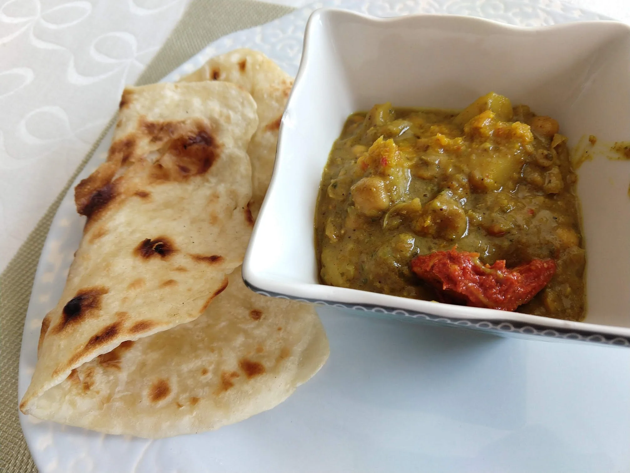 For starch this can be combined with many things. One is with buss up shot roti, which is the Trini take on roti paratha. It’s not very difficult to make, but you may need to experiment with the heat for the tava (or griddle) you are using to get it right. I basically use a modified version of this recipe: https://caribbeanpot.com/buss-up-shut-roti-made-easy/ I also prefer using ghee or some other oil when making it, and brushing them with ghee on it once it’s cooked as well. A Malaysian-style roti paratha can work as well. Another is inside a fry bake: https://www.simplycaribbean.net/the-best-trinidad-style-fry-bake/?v=920f83e594a1