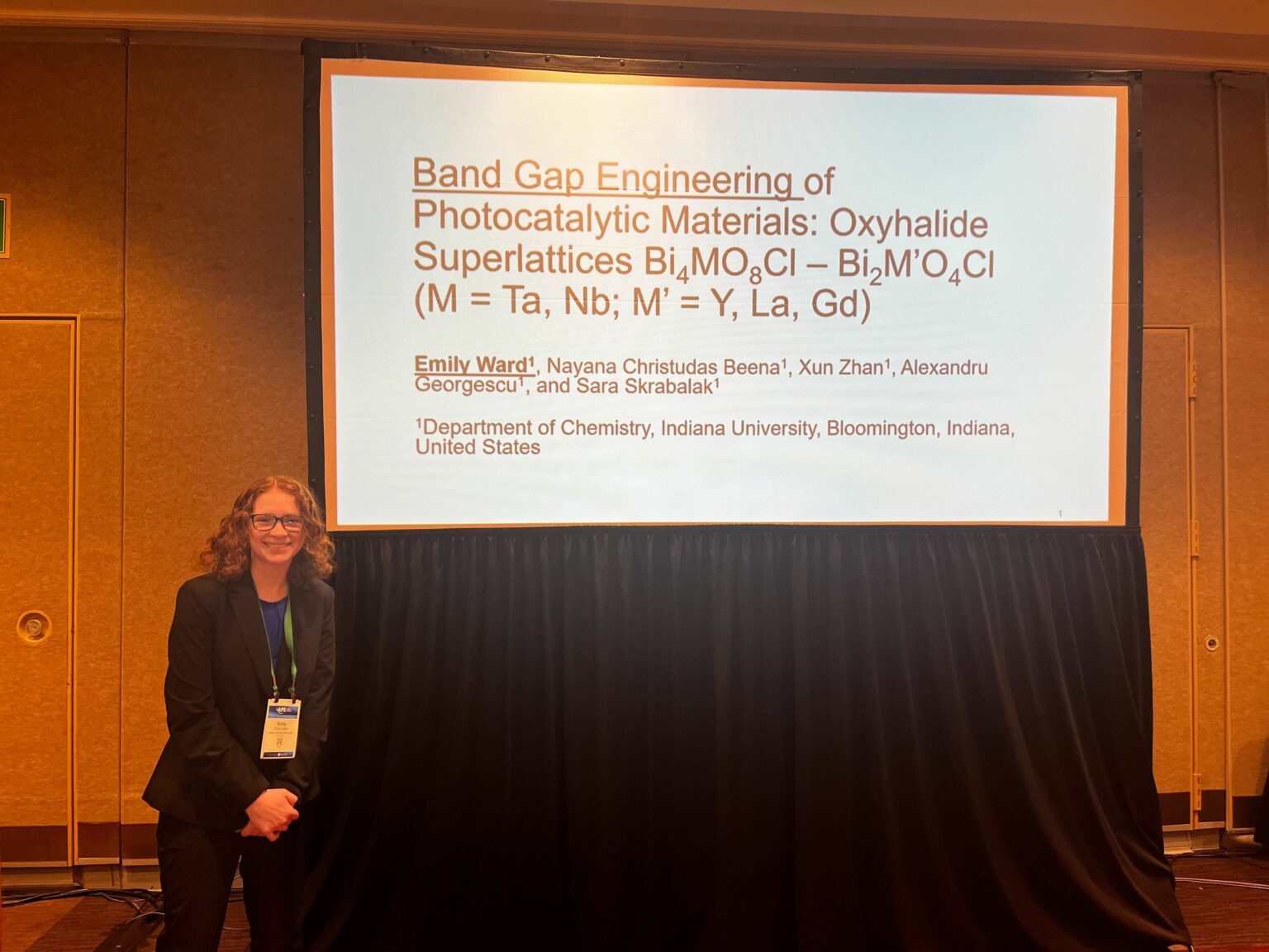 Congratulations Emily Ward, one of the undergraduate students in our group, who received an ACS Inorganic Chemistry award as a result of her nomination by Indiana University! In the picture above, she is presenting her work in our group and the Skrabalak group at the APS March meeting in 2024.